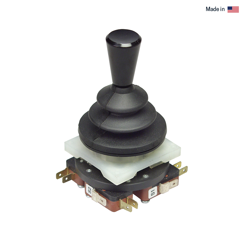 The M2 is a mini joystick designed specifically for bang / bang (on / off) operation. Available in single or dual axis control, this finger operated joystick is suited for use in remote control systems and applications with limited space.